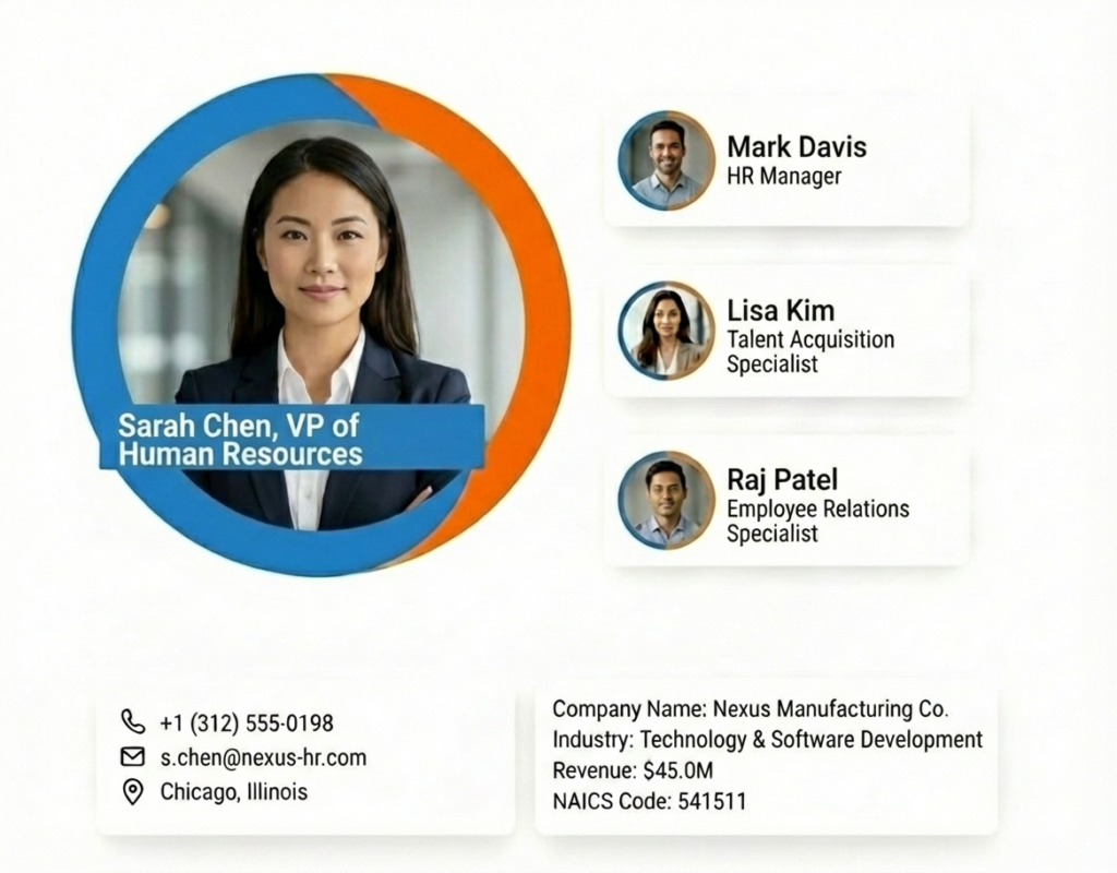 HR software providers, recruitment agencies, payroll vendors, training companies, and B2B marketers use this list to connect with HR leaders who influence purchasing and vendor selection.